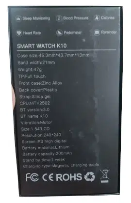 The K10 smartwatch will support a single SIM as well as a calling function. The watch also has sleep monitoring, blood pressure, calories, heart rate, pedometer, reminder, 3D acceleration, and vibration loudspeaker mute / vibration function. The smartwatch has a 200mAh Li-Polymer battery and can be charged magnetically. This smartwatch can save call history, phone book SMS, and call reminders.