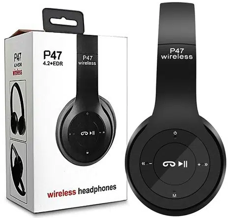 P47 Wireless Headphone features a 10-meter scope of work, 2 hours charging time, 6 hours music and talk time, forward and backward selection function, 105dB+ / – 3dB sensitivity, very easy to use and carry, 32GB external TF storage, 10m Bluetooth range.